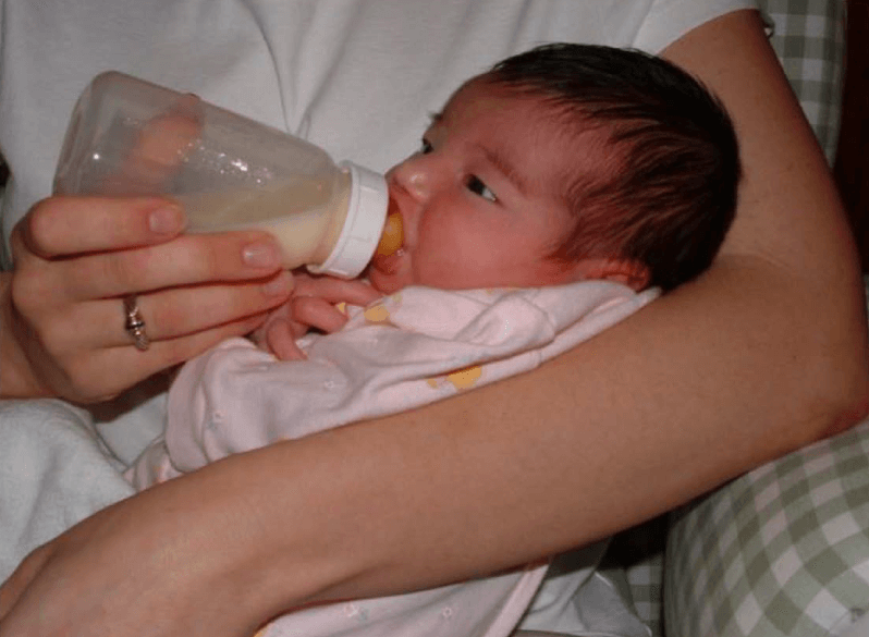 Hold your baby almost upright and the bottle almost horizontal so gravity does not overwhelm your baby with a fast flow of milk. Observe your baby for signs of too fast or too slow flow. Instruct anyone else who feeds your baby in these feeding techniques.